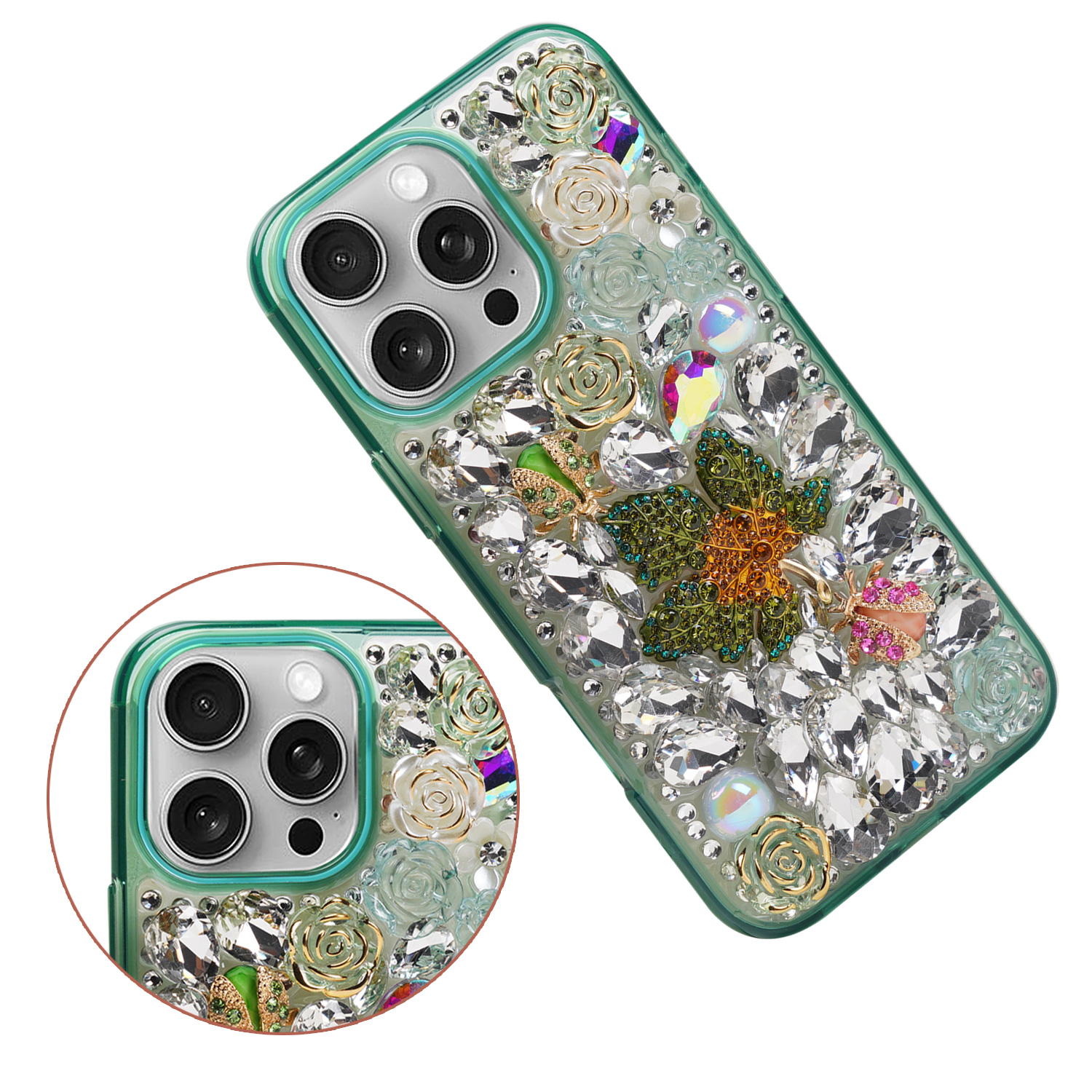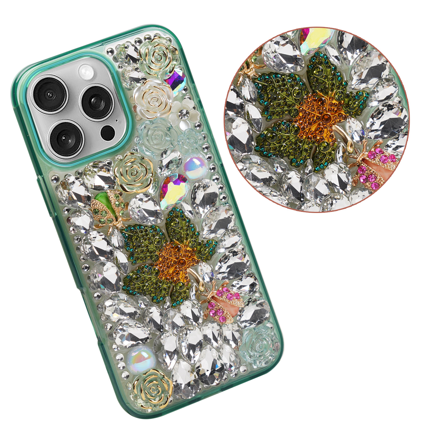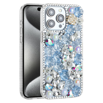 Coque de luxe DML pour iPhone 15 Pro Max avec motif feuille et sangle Bleu