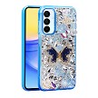Coque DMB pour Samsung Galaxy A15 5G/A25 5G, luxueuse, avec strass et papillon, avec béquille, bleu